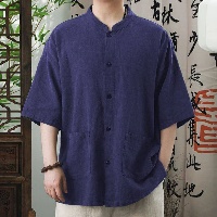 棉麻立領五分袖