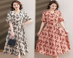 大碼印花氣質長裙