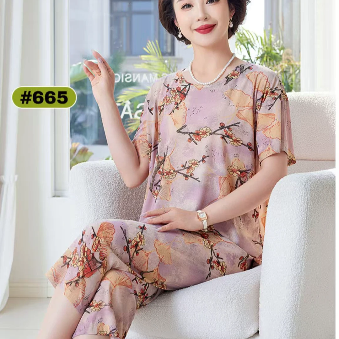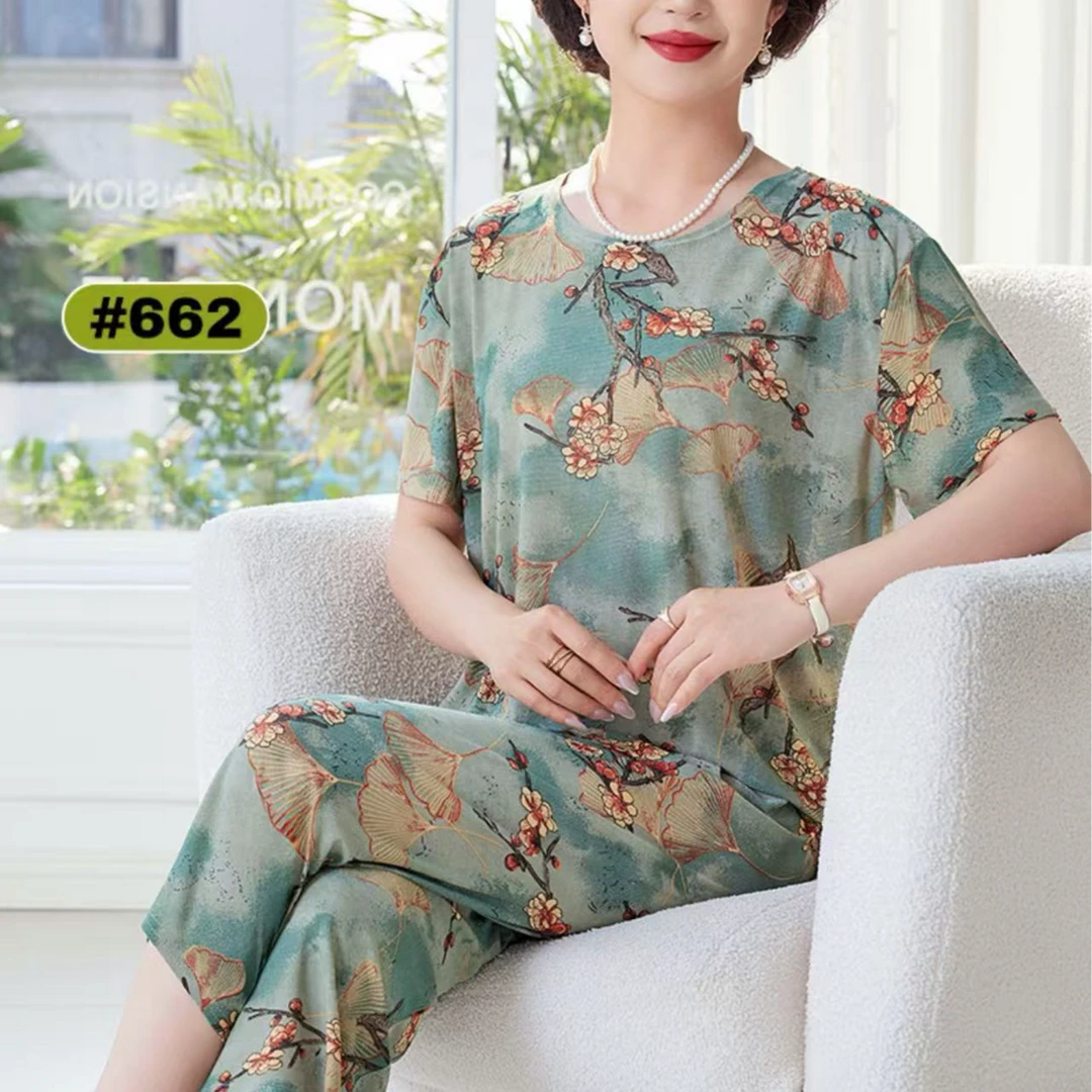 【熱銷爆款】夏季冰絲媽媽套裝 版型時尚舒適透氣