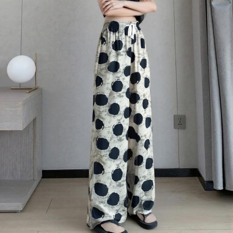 複古印花休閒褲 高腰線 闊腿褲型 輕鬆拉長腿部線條 小短腿秒變大長腿