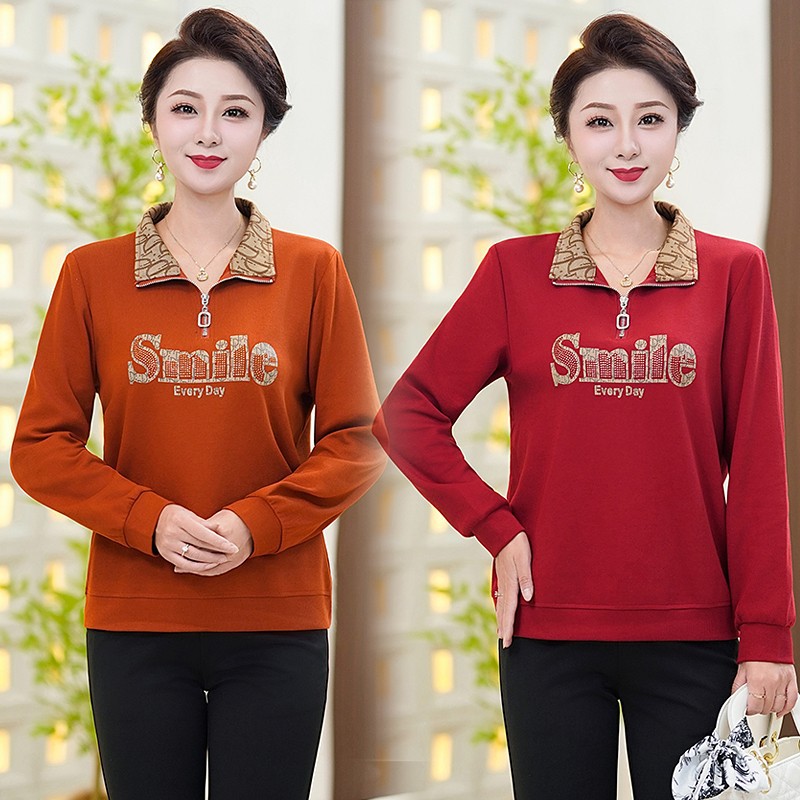 中年媽媽衛衣女時尚洋氣半拉鍊秋裝新款上衣百搭休閒減齡長袖T恤