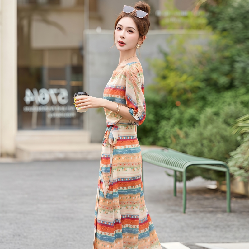 夏日就愛這件裙 彩色條紋超吸睛 透氣面料超清爽 寬鬆設計遮肉超有感 修身不壓身 穿著舒服又時尚