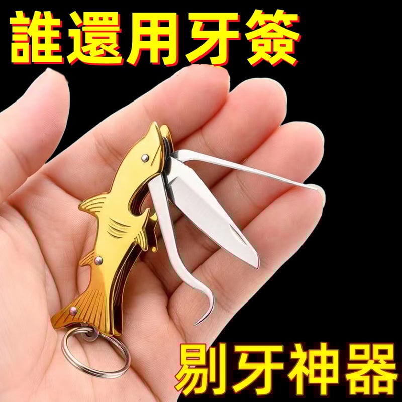 【剔牙神器】多功能牙籤鑰匙扣,304不鋪鋼,牙籤+水果籤+小刀+開瓶器四合一,迷你的身軀,大大的用途!