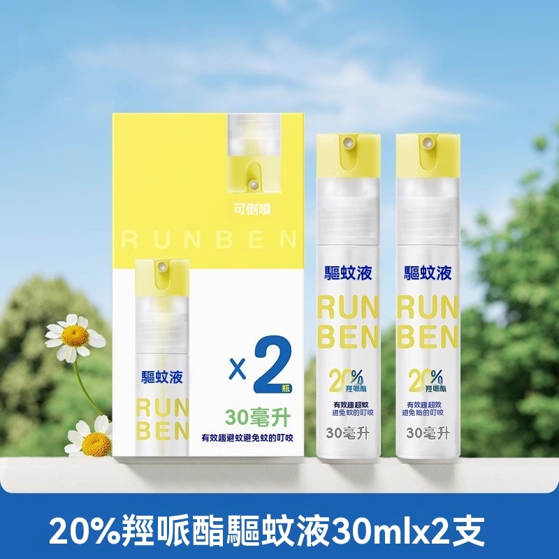 潤本20%羥哌酯驅蚊液30ml*2(無香型)便攜倒噴瓶