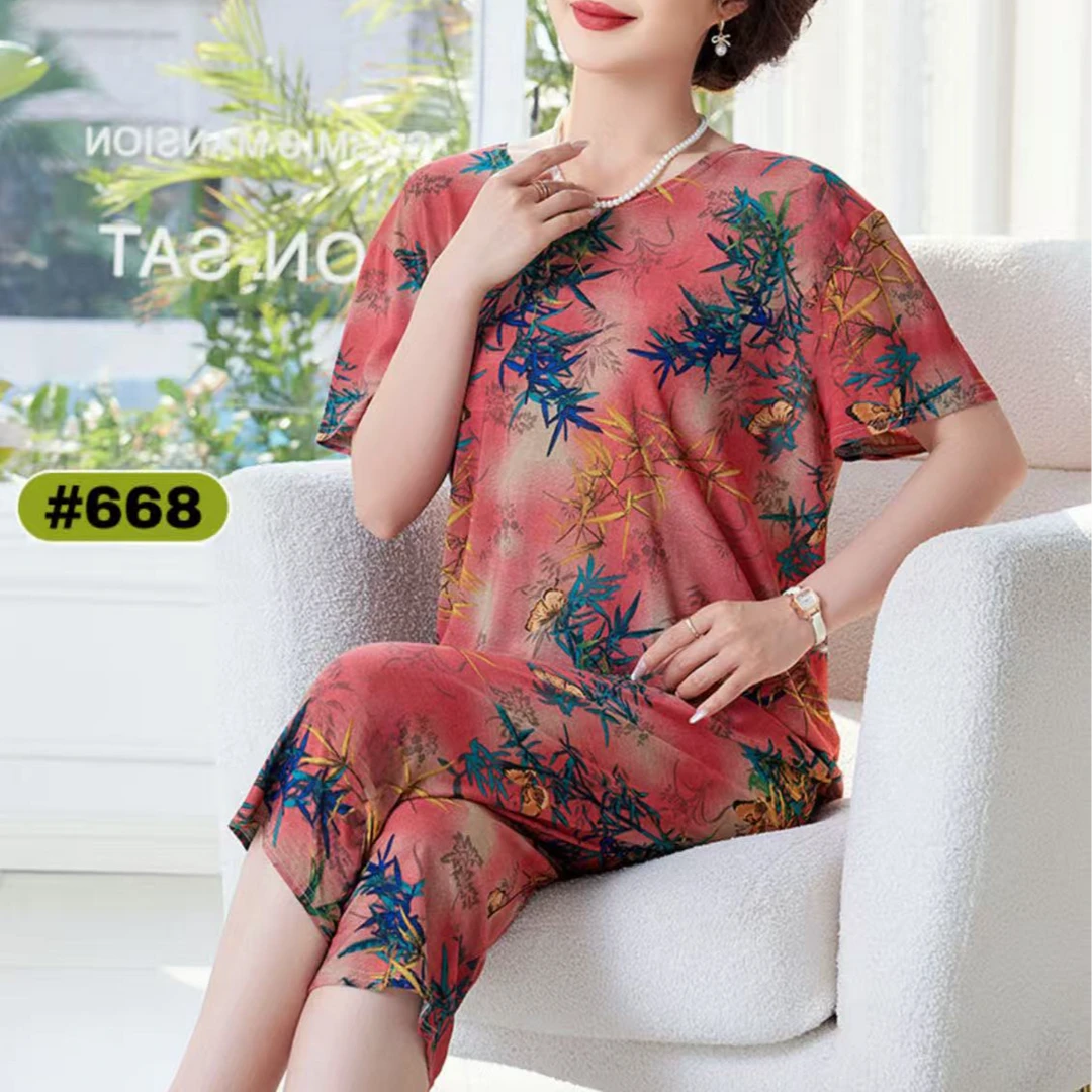 【熱銷爆款】夏季冰絲媽媽套裝 版型時尚舒適透氣