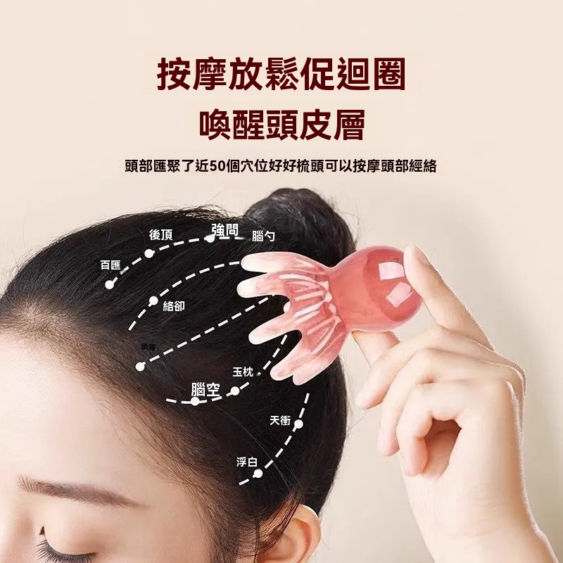 八爪魚按摩梳 按摩放鬆促循環 精準喚醒頭皮層 頭部近50穴位都能按 給頭部做專屬SPA