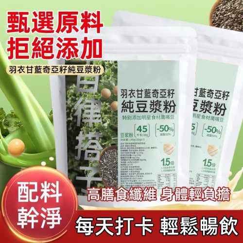 全新升級的 羽衣甘藍奇亞籽豆漿粉,低熱量高纖維 植物蛋白+超級食物=輕盈無負擔,奇亞籽遇水膨脹12倍,擊退貪食慾!無添加糖,冷熱皆可沖