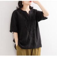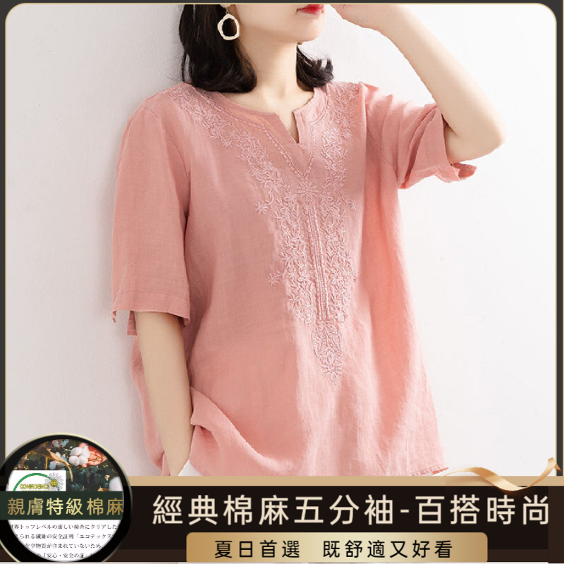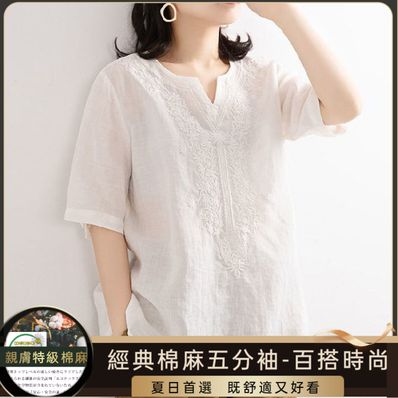 【出行拍照真的超級美】夏日首選,棉麻刺繡五分袖,吸濕排汗,保持肌膚乾爽,告別悶熱黏膩